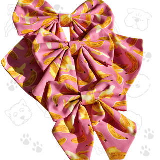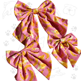 Introducing our hand-made "Happy Banana" 🍌 Over the Collar Bow Tie 🎀 from our "Chicken & Banana 🐔🍌" Collection launched to celebrate my 30th birthday 🎂 - "to share my inner personality with you all". All our handmade products are crafted by me with love ❤️ that adds more cuteness and personality to your pups or kitties and your everyday life. We offer 4 sizes for our Collar Bows to fit your styles. (If our 4 sizes does not fit your need, welcome to contact me for a custom order). We also make matching hair scrunchies for you to match up with your fur babies in the sweetest way! Perfect to spoil yourselves or pet lovers around you.